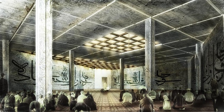 Also, the symbolic form of the mosque was shaped by a different form of minarets, using inscriptions and calligraphy on minarets and heightening the part of mosque roof to be visible from far distances, to invite and to direct movement in the site.